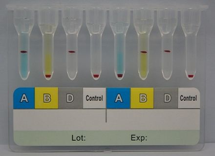 全血:取生理鹽水1-2滴,分別滴于A,B和陽(yáng)性對(duì)照孔中,用牙簽輕輕混勻,上下左右傾斜,注意不要讓液體溢出。2分鐘內(nèi)觀察結(jié)果。