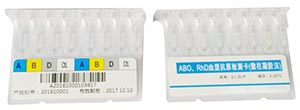 血型檢測卡用于快速檢測新鮮血液的ABO血型。在每一個檢測孔內(nèi)滴加一至二滴待測紅細(xì)胞懸液(濃度不低于2%),混合作用30秒鐘后,上下傾斜試劑卡或用牙簽攪勻,不要讓液體流出孔外,1分鐘內(nèi)觀察結(jié)果。有砂粒狀凝結(jié)物的為陽性,沒有凝結(jié)物的為陰性。